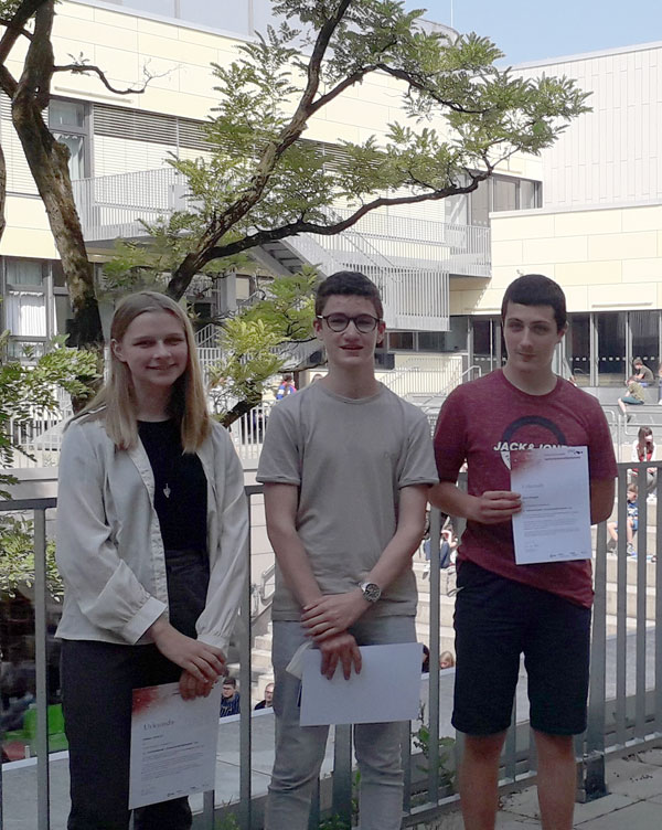 - Aus der Klasse 10b absolvierten Diana Günther, Elisa Spaltner, Samarth Padaki, Tim Schneider, Darius und Fabian Lorenz die ersten beiden Runden.